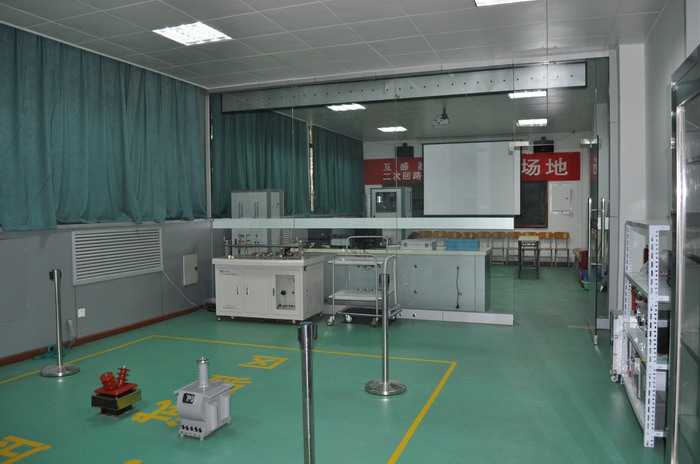 互感器校验实训室于2008年8月正式投入使用,实训室面积92.16m2,分为两部分。一部分内部配置有互感器检定装置、教学设备、办公桌、办公柜、柜式空调多媒体教学设备等。二部分内部配置有互感器检定测试架、安全工器具柜、柜式空调等。两部分之间安全警示门隔开。