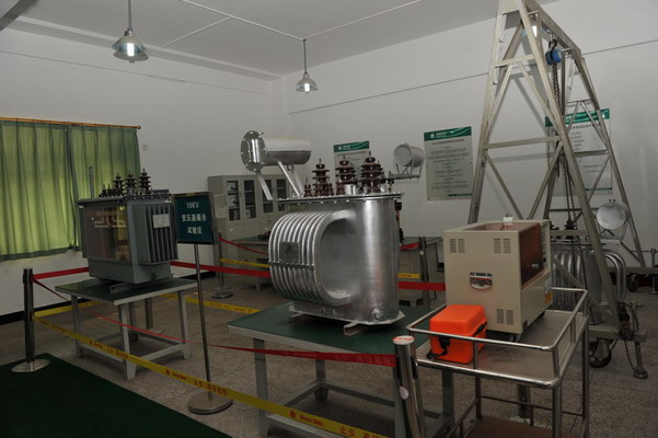 变压器检修实训室建于2008年。该实训室主要仪器设备设施有:用于培训讲课的多媒体设施一套、50套桌椅、10kV配电变压器两台、教学用10kV全封闭配电变压器一台(前后隔板透明可拆卸)、数字式绝缘电阻测试仪1台、变压器直流电阻测试仪1台、变压器变比组别自动测试仪1台等。