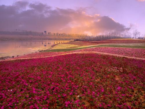 推开窗户,呼唤你,你在我耳边虚语,说你无处不在,我便拥着暖暖的阳光走上堤坝,脚下的土质好松软,时时有支起的一片片泥土,我知道那是野菜的种子在萌发着生命,有的则刚刚展露出一两片嫩叶,风轻柔地抚摸着我的秀发,柳含羞地低下头,笑出了新绿,鸟儿偷吻了桃树,羞红了桃花,却映红了我的睑颊,鱼儿不知疲惫地戏游着红花绿柳的倒影,惊的坡上的小草挤在一起,伸直脖子张望着。