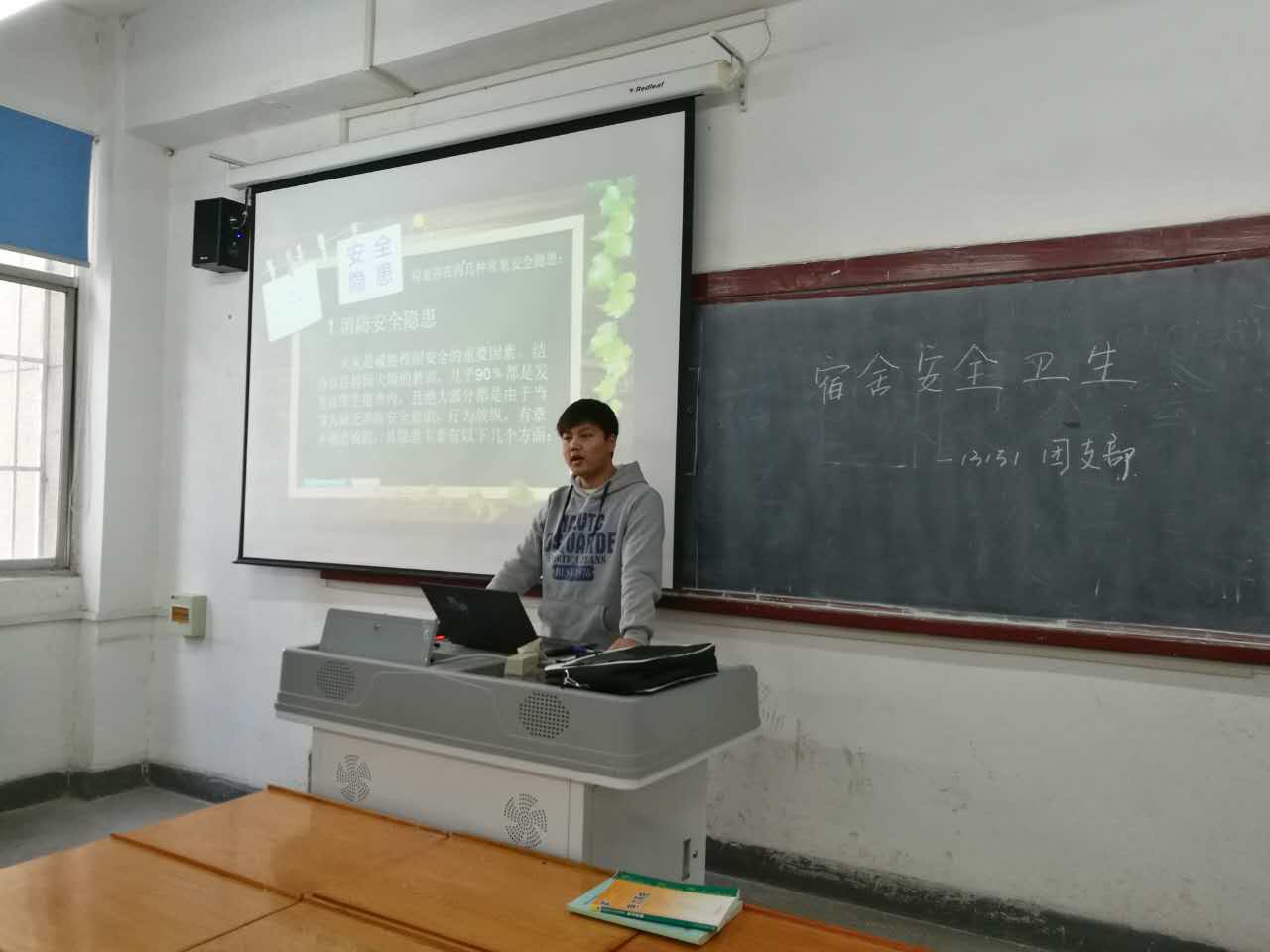 在会议举行前,各班班委集体合作,下载并剪辑了一些有关安全问题的视频,以此来给大家敲醒警钟。视频向大家介绍了近年来出现在中国大学校园里的各种安全问题,以及它们所造成的严重损失,在一句句沉痛的话语中,大家受到感染,并对安全问题有了更深的认识和警惕。