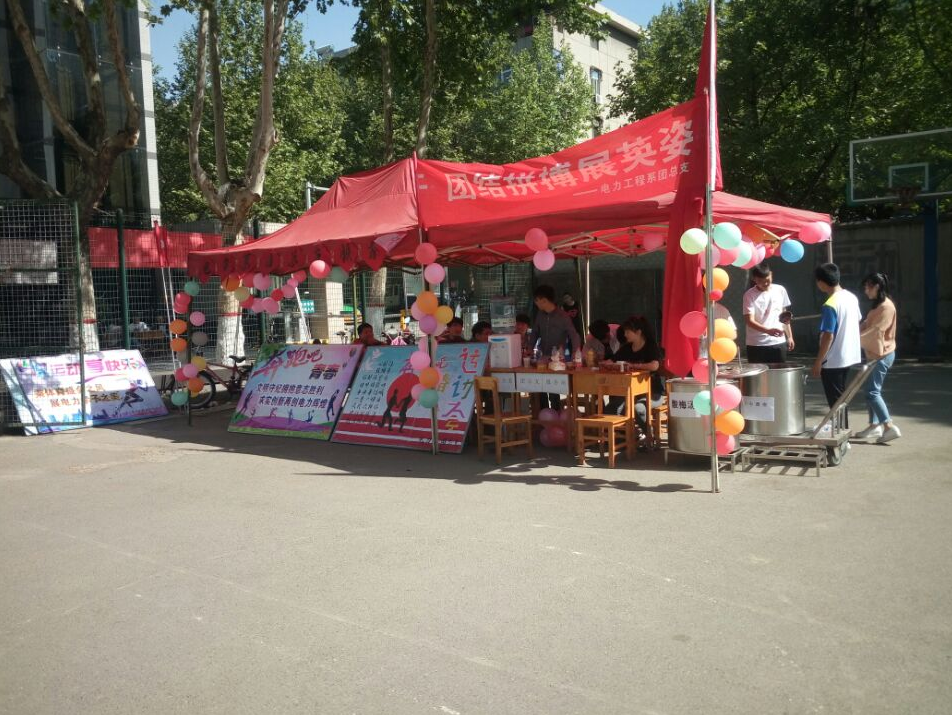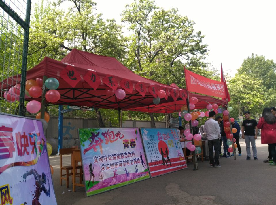 2017年4月21日,正值初春之际,阳光明媚,丝丝春风渗进了每个人的心里。我校春季运动会也拉开了帷幕。在电力学生党支部的领导下,电力系团总支在我校篮球场门口搭建“电力系团总支服务站”,为全校师生、运动员、裁判志愿服务,提供帮助。