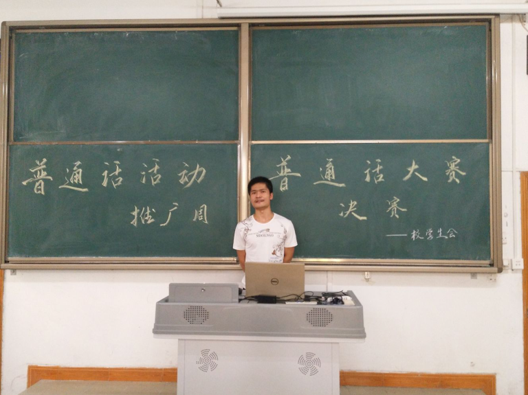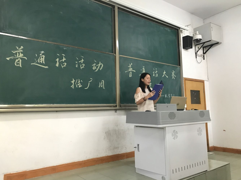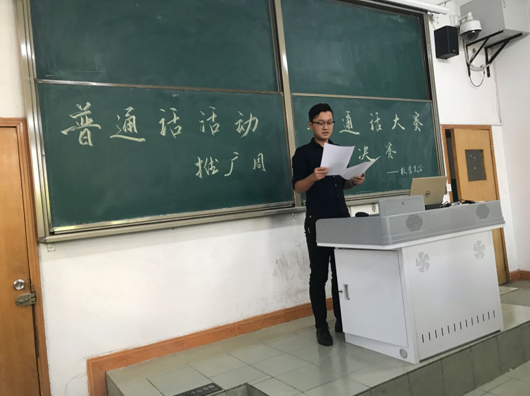 普通话是现代汉民族共同语,也是中华人民共和国的国家语言。大力推行积极普及普通话并逐步提高全民说普通话的水平,是国家推广普通话的工作方针。因此为了推广普通话和语言文字规范化的不断深入,也为了更全面的提高我校师生的语言文字规范意识和推普参与意识,我校于2017年9月13日开展了普通话大赛,同学们都积极参与其中。比赛主要分为两个阶段,一个是同学们普通话的标准,一个是同学们朗读中的情感。每一个参赛者,都拿出了自己最满意的状态以及最饱满的热情,用真挚的情感朗读出了真实的自己。每一首被选于参赛的诗歌,也会让我们不由欣赏。与其说是比赛,更像是一场交流诗歌的大会。