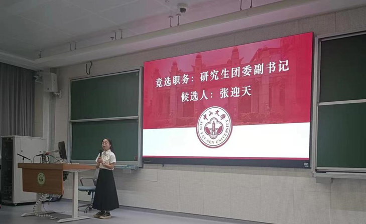 学生候选人张迎天、黎卓坚、方超凡、余嘉宜、秦华谦、吴恺云、苏秦依序进行演讲和答辩。他们结合个人学生工作经历,阐述自己的工作理念与未来规划,表达了为同学服务、建设更好团学组织的信心与决心。
