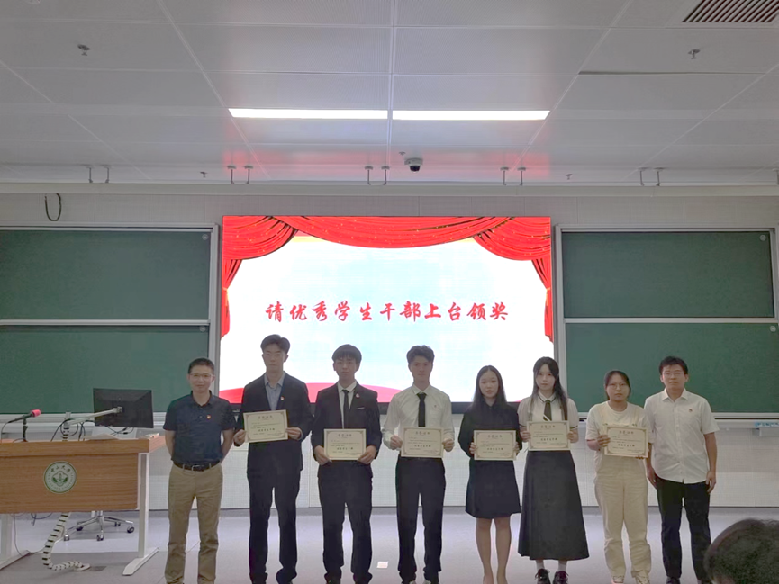 本次大会宣布了2022-2023学年团委、学生会优秀学生干部获奖名单。老师为到场的优秀学生干部颁奖并合影留念。