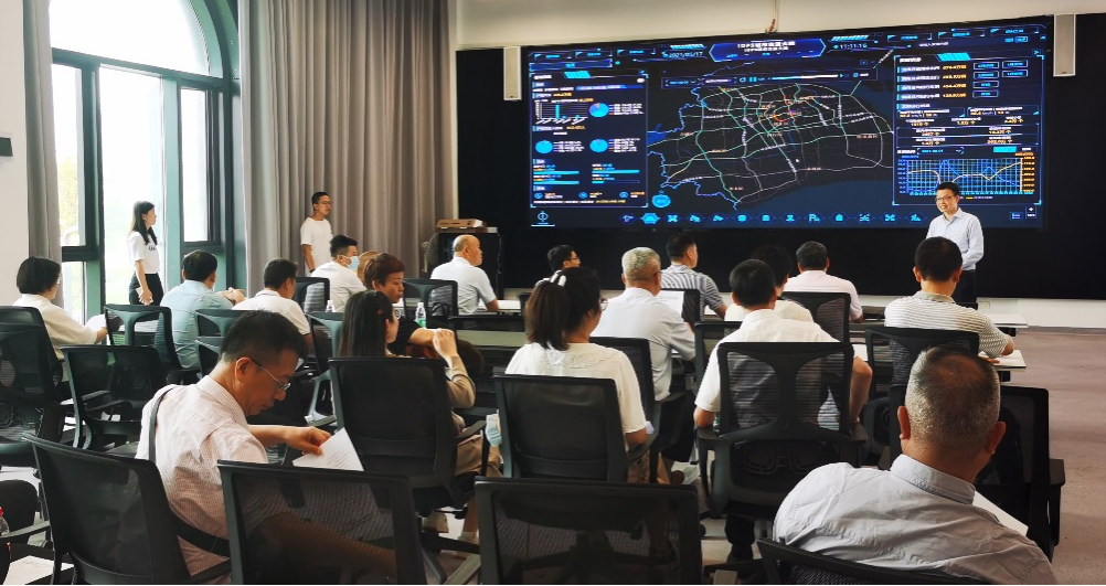 在中山大学深圳校区,广东省公路事务中心考察团首先参观了车路协同、智能驾驶的实验车道。随后,考察团参观了智慧城市交通大脑实验室、智慧交通电子沙盘实验室、汽车与交通安全实验室、中大-广汽联合实验室、无人机技术实验室。蔡铭教授向考察团成员介绍了实验室的研发条件、技术力量、应用成果,演示了上海交通大脑系统等。这些前沿的科技展示让考察团成员对我校智能交通团队科研与教学有了更深入的了解。