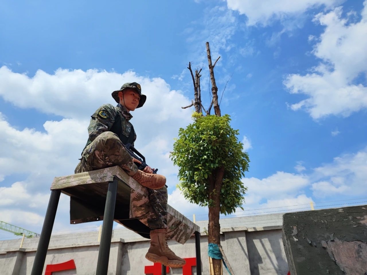 长沙不愧是“民国四大火炉城市”之一,就算是在阴凉的场地也能感受到滚滚热浪,更不用说有时还必须在烈日下暴晒,所以每个考场旁边都有专门为中暑战友准备的充气水池,只要晕倒了能第一时间丢进去降温解暑。但就算天气再炎热,考核还是要按计划开展,我们每天凌晨5点起床,夜晚12点才能完成当日任务。几天下来,我就暴瘦7斤,但让我感到非常自豪的是:考核任务圆满完成,无一差错。