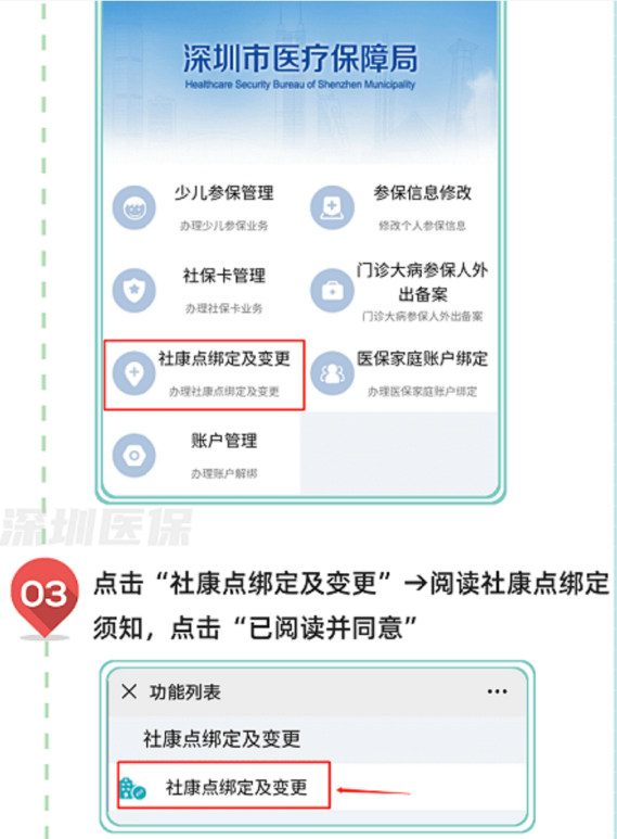四、绑定深圳市一家社康中心作为门诊就医的定点医疗机构(深圳校区门诊部为中山大学附属第七医院深圳校区社区健康服务站)