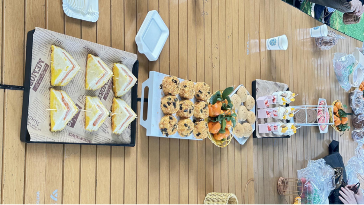 中午时分,校园里春光烂漫,老师们欢聚一堂,共享丰盛的午餐。桌上美食琳琅满目,从香甜的糕点到香酥的炸鸡,每一道餐品都散发着诱人的香味。大家在轻松愉快的氛围中交流着教学心得和生活趣事,共同庆祝这个属于她们的节日。