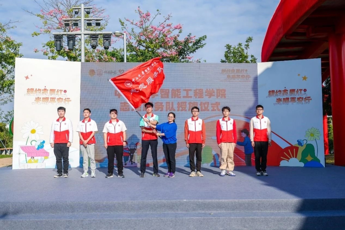 志愿服务由光明区群团工作部副部长、团区委书记范维新致辞,范书记表达了对光明志愿者持续发挥引领示范作用、深入践行志愿服务精神的期望。随后进行虹桥志愿服务站隆重揭牌。最后由光明区义工联合会会长陈肖丽亲自为我院志愿服务队授予队旗,院学生团委副书记秦华谦领旗。他们挥舞着队旗,气势如虹,标志着248cc永利集团志愿服务队正式成立,这将为学院的志愿服务事业注入新的活力和动力。