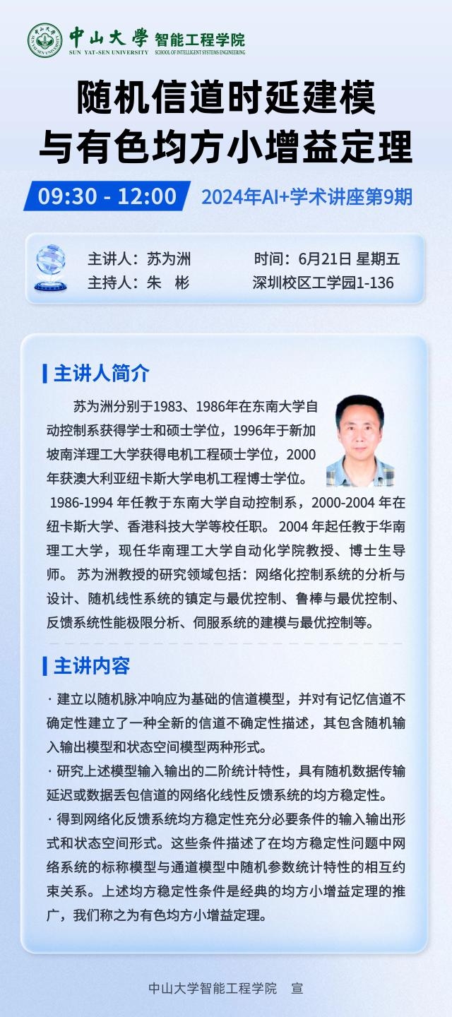 学术讲座 | 苏为洲:"随机信道时延建模与有色均方八增益定理”的学术报告讲座