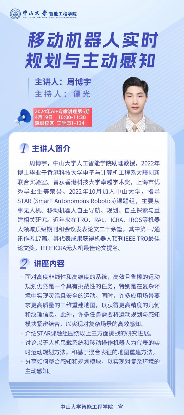 学术讲座 | 周博宇:"移动机器人实时规划与主动感知”的学术报告讲座